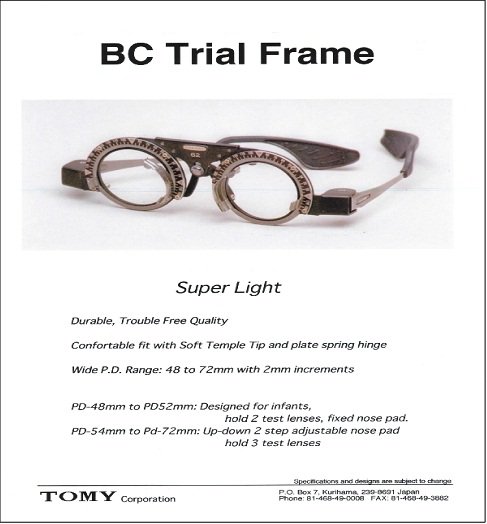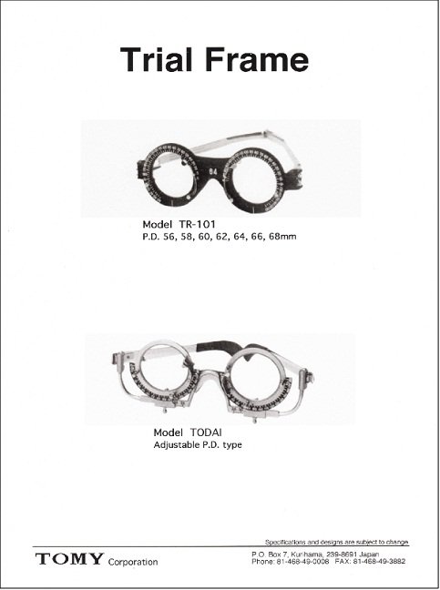 (Tomy : Trial Frame ; Model Adjust PD.)
